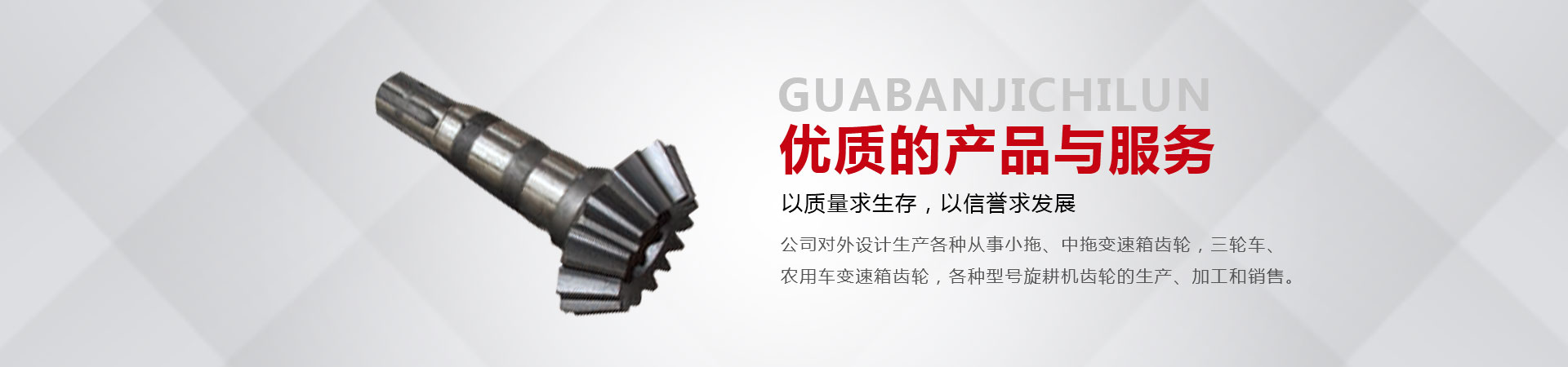 本廠位于省會東南60公里的全國重點鎮(zhèn)——大陸村鎮(zhèn)。本廠在市場內(nèi)設有銷售公司,經(jīng)銷工程機械;農(nóng)用拖拉機;農(nóng)機具的整機和全車配件。市場緊靠308國道,距青銀高速寧晉路口14公里,交通十分方便。主要從事小拖、中拖變速箱齒輪,三輪車、農(nóng)用車變速箱齒輪,各種型號旋耕機齒輪、收獲機械變速箱齒輪的生產(chǎn)、加工和銷售。同時加工定做各種直齒輪,傘齒輪,斜齒輪,鏈輪,齒輪軸等機械產(chǎn)品。廠內(nèi)檢測手段齊全。十幾年來與河北、北京、山東、安徽、河南、吉林、陜西、山西、寧夏、黑龍江、遼寧等省市的企業(yè)建立了穩(wěn)固的業(yè)務關系。產(chǎn)品質量穩(wěn)定、價格合理、供貨及時。